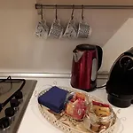 تشتمل الشقة على المطبخ كامل التجهيز وميني بار وأدوات تحضير القهوة والشاي، وتوفّر الفرن والموقد المسطح والأواني.